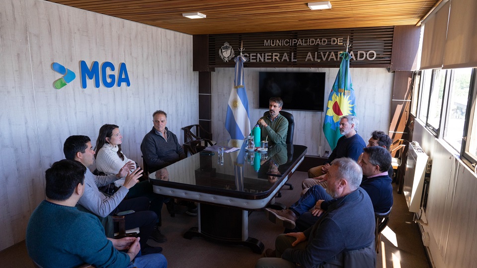 El intendente municipal de General Alvarado, Sebastián Ianantuony, recibió al Arq. Diego Domingorena, presidente del Colegio de Arquitectos Distrito IX, acompañado por el delegado local, Arq. Federico Arias, y parte de sus respectivas comisiones, para la firma del Convenio entre el Colegio y el Municipio para iniciar al Concurso Nacional de Ideas.
