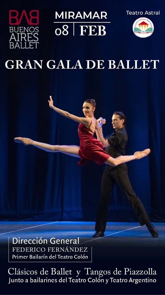 Buenos Aires Ballet, compañía dirigida por el primer bailarín del Teatro Colón, Federico Fernández, llegará este domingo a Miramar en el marco de su gira 2026 con Gran Gala de Ballet y grandes éxitos de Piazzolla junto a primeras figuras de la danza argentina, del ballet del Teatro Colón y del Teatro Argentino.