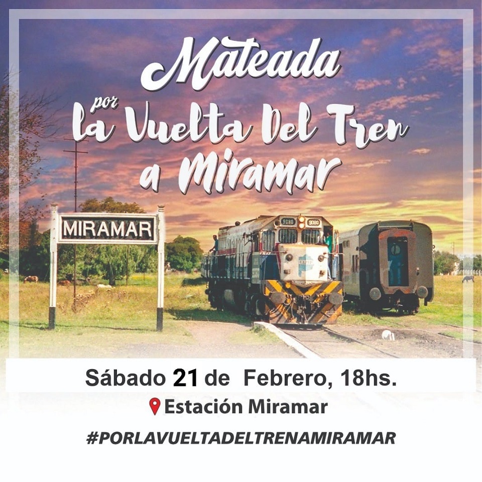 Vecinos de Mar del Plata, Batán, Estación Chapadmalal, Otamendi y Miramar vuelven a organizar una mateada reclamando por la vuelta del tren, que se celebrará el sábado 21 de febrero desde las 18:00 en la Estación Miramar.