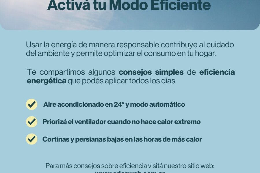 En el marco de la temporada de verano y ante el pronóstico de nuevas olas de calor, la Empresa Distribuidora de Energía EDEA sigue promoviendo hábitos...